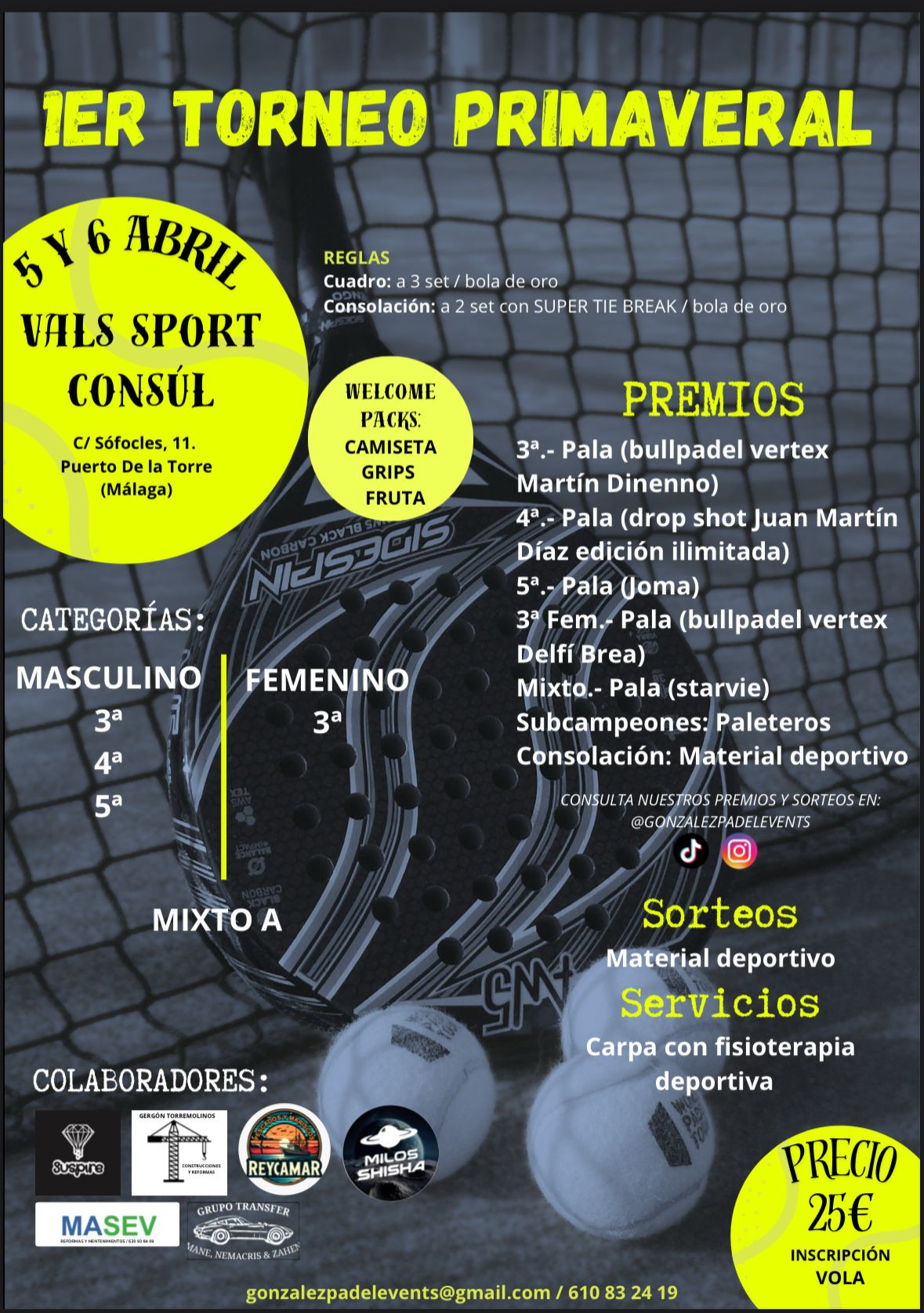 Soy organizador de un torneo amateur con distintas categorias que tendrá lugar los dias 8 y 9 de marzo en Vals sport cónsul. Podeis poneros en contacto conmigo, gracias