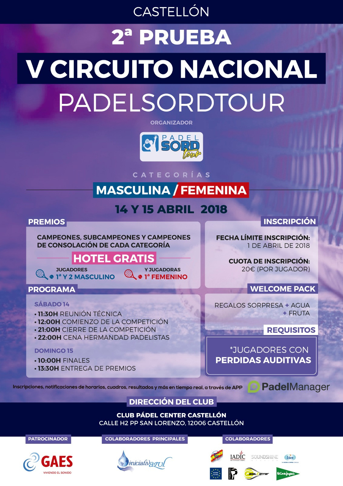 2ª PRUEBA V CIRCUITO NACIONAL PADELSORDTOUR